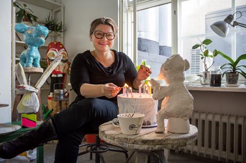 Jasmin Anoschkinin laaja taiteellinen osaaminen niin maalarina kuin puuta ja savea veistävänä taiteilijana koettiin Arabian Taideosastolla hyvin tärkeäksi. Kun Jasminilta kysyy, miltä tuntuu olla taideosastolla uudestaan, hän pohtii hymyillen ääneen, josko kertoisi tarinansa. Innostus voittaa: