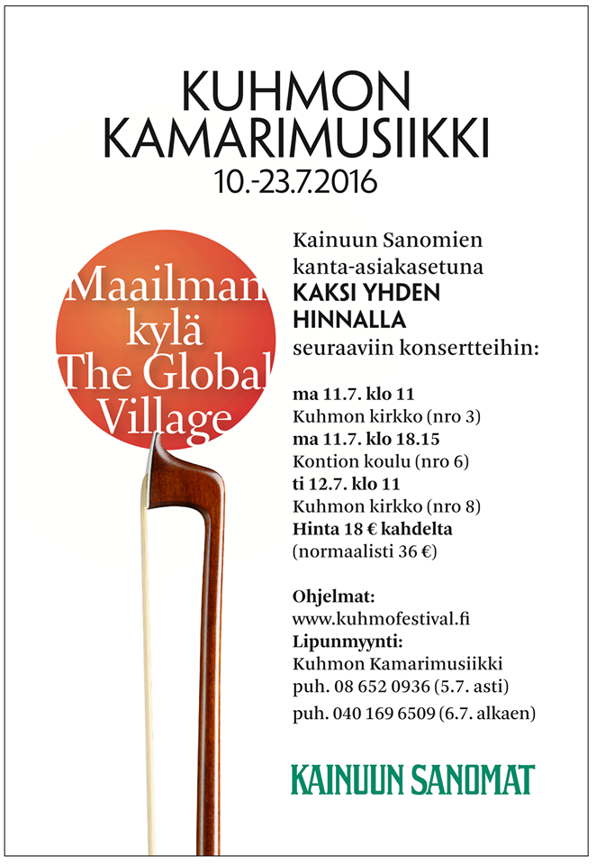 Yli 160 huippumuusikkoa eri puolilta maailmaa kokoontuu heinäkuussa Kuhmoon tarjoamaan yleisölle ainutlaatuisia kokemuksia kymmenissä konserteissa. Kainuulaisesta pikkukaupungista tulee jälleen kahden viikon ajaksi kansainvälinen kamarimusiikkikeskus, kun Kuhmon Kamarimusiikki käynnistyy sunnuntaina 10. heinäkuuta.