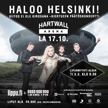 Tämän hetken suosituin suomirockyhtye Haloo Helsinki! päättää kiertueensa Helsingin Hartwall Arenalle. Kiitos ei ole kirosana-kiertueen päätöskeikka on 17. lokakuuta ja liput keikalle tulevat myyntiin tiistaina 3. maaliskuuta. Yhtye jää keikan myötä vuoden tauolle.
