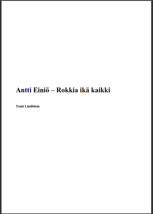 Antti Einiö – Rokkia ikä kaikki –teoksen on kirjoittanut Tomi Lindblom. Teos on julkaistu elektronisena kirjana, ja se on luettavissa ja ladattavissa maksutta osoitteessa www.visualmedia.fi. Kirja vie lukijansa aikamatkalle Antti Einiön ja suomalaisen konserttihistorian maailmaan. Kyseessä on samalla oiva lähdeteos kaikille kevyen musiikin ja konserttien ystäville.