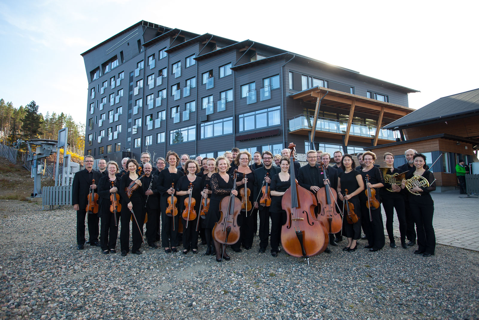Konsertin aloittaa Harri Vuoren orkesterirunoelma Lentoon, joka kuvaa joutsenten kevätmuuttoa Pohjolaan. Säveltäjä kirjoittaa: Tämän uuden ja tähän asti ainoan jousiorkesterille säveltämäni teoksen syntyhistoria on mielenkiintoinen ja sen työprosessi harvinaisen intensiivinen: