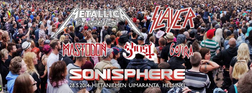 Eurooppaa kiertävä Sonisphere Festival rantautuu toukokuussa Suomeen. Festivaalin ohjelmisto täydentyy nyt jo julkistettujen Metallican ja Slayerin lisäksi yhdysvaltalaisbändi Mastodonilla, ruotsalaisella Ghostilla ja ranskalaisyhtye Gojiralla. Sonipshere Festival järjestetään helatorstaita edeltävänä keskiviikkona 28. toukokuuta Hietaniemen uimarannalla Helsingissä. Lipunmyynti käynnistyy tämän viikon torstaina 12. joulukuuta Lippupalvelussa.