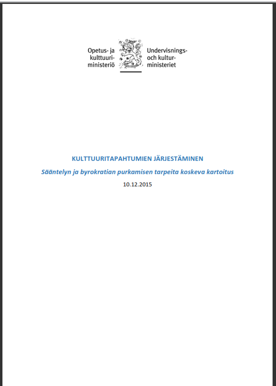 Kulttuuritapahtumien järjestäminen. Sääntelyn ja byrokratian purkamisen tarpeita koskeva kartoitus.